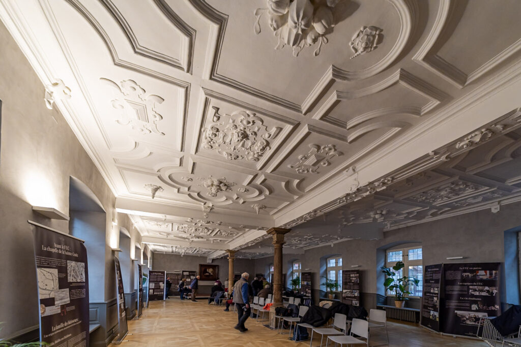 Le mardi 13 janvier, un premier groupe d’Amis de la cathédrale a eu le plaisir de suivre deux historiens, MM. Fleck et Stahl, dans leurs explications et visites de l’exposition du F.E.C. et des lieux. Située dans la grande salle Léon XIII, bellement restaurée et au plafond richement décoré, la présentation a débuté par l’historique du F.E.C. et s’est poursuivie par le commentaire de panneaux illustrés et explicatifs. N’en présentons que quelques points.