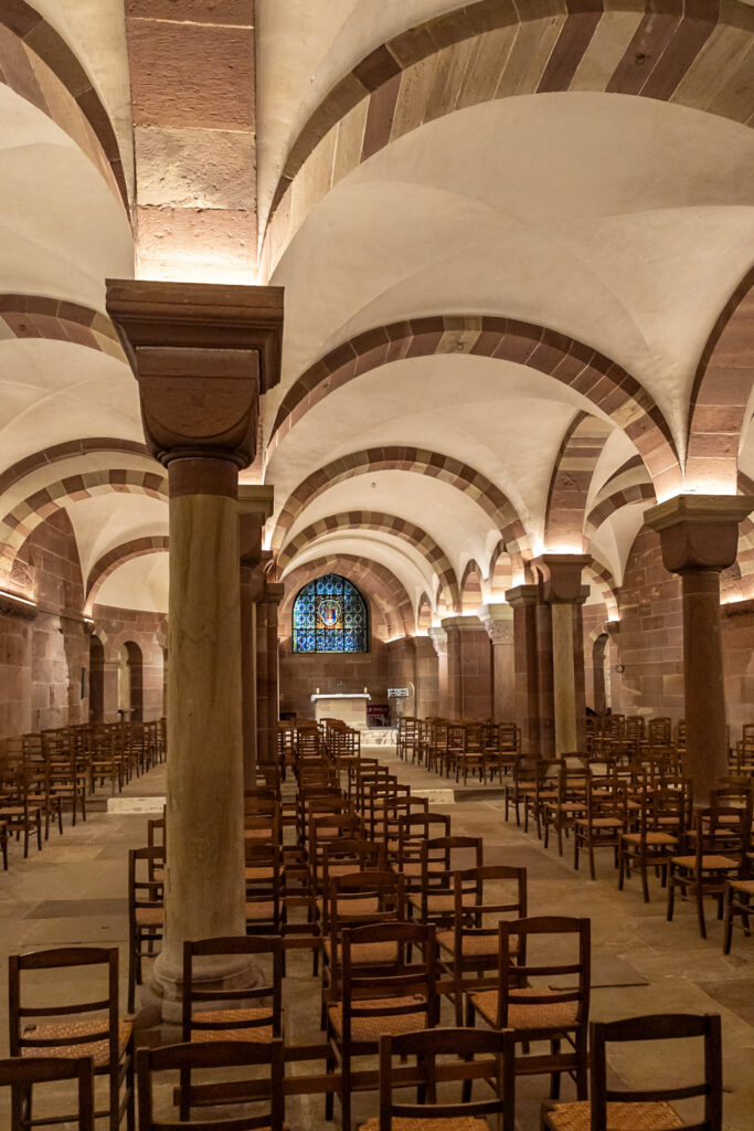 Elle souligne par ailleurs l’impressionnante quantité de documents historiques portant sur la Cathédrale et la Fondation Œuvre Notre-Dame. Mais sur l’utilisation actuelle de la crypte en elle-même, on ne sait pas grand-chose, celle-ci étant effectivement fermée au public. On note toutefois la célébration de certains mariages, de messes ou autres manifestations, occasionnellement. Alors, nous direz-vous, n’y a-t-il pas l’un ou l’autre membre du clergé qui ait fait de la crypte sa dernière demeure ? À cette question, Mme Bengel nous indique simplement la Chapelle Saint-Jean qui abrite une représentation de la tombe de Konrad von Lichtenberg. Et nous parle du caveau funéraire dans lequel sont enterrés plusieurs évêques de Strasbourg.